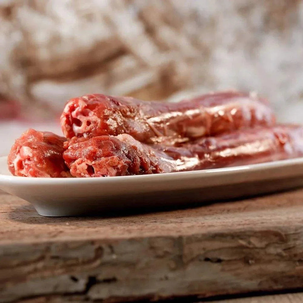 Kalbsbrustbeinknochen in kleinen Stücken liefern eine natürliche Portion Calcium und Phosphor – essenziell für starke Knochen, gesunde Zähne und eine stabile Muskulatur. Die weichere Knochenstruktur vom Kalb ist besonders schonend für Zähne und Zahnfleisch, eignet sich aber trotzdem ideal für intensives Kauen.
