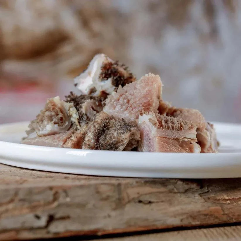 Da der Pansen nur grob gereinigt wird, bleiben natürliche Nährstoffe und Futterreste erhalten – genau dieses „Grün“ macht ihn zu einer idealen BARF-Zutat. Eine gut verträgliche Alternative für Hunde, die Rind weniger gut vertragen.