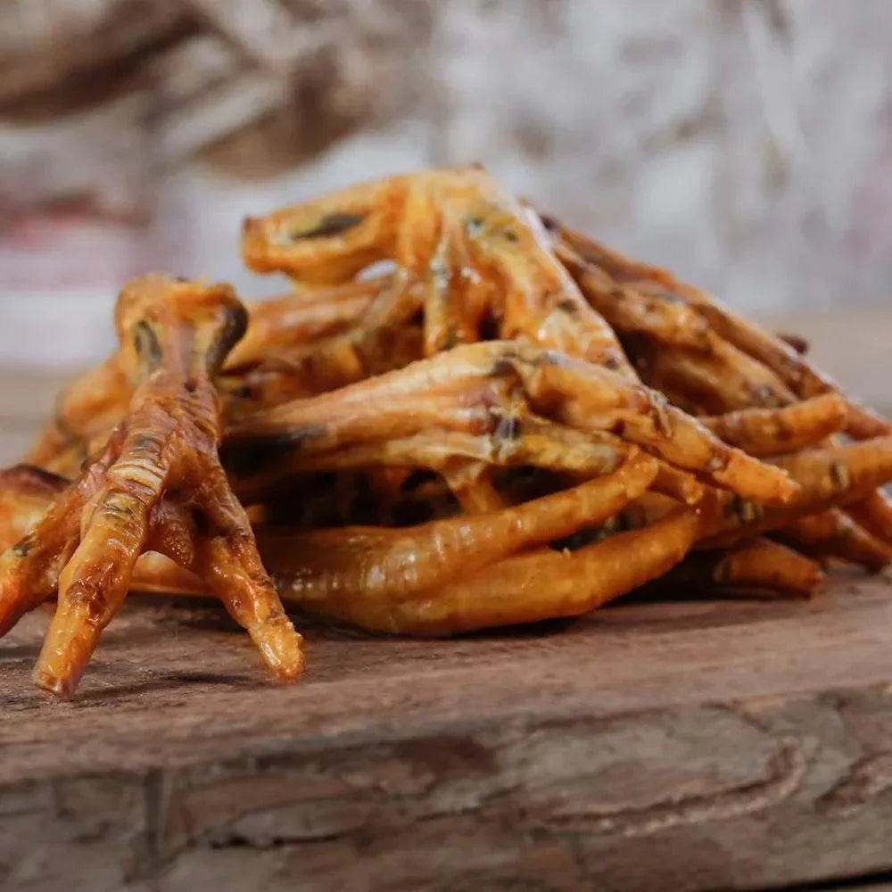 Getrocknete Hühnerfüße mit Krallen sind ein natürlicher Kausnack für Hunde und Katzen und eignen sich ideal für eine artgerechte Beschäftigung. Die feste, knusprige Struktur fördert intensives Kauen und kann zur Unterstützung der Zahnpflege beitragen. Als natürliche Calciumquelle unterstützen Hühnerfüße den Knochenstoffwechsel und die Zahngesundheit. Durch die schonende Trocknung sind sie gut verdaulich und auch für sensible oder allergische Tiere geeignet.
