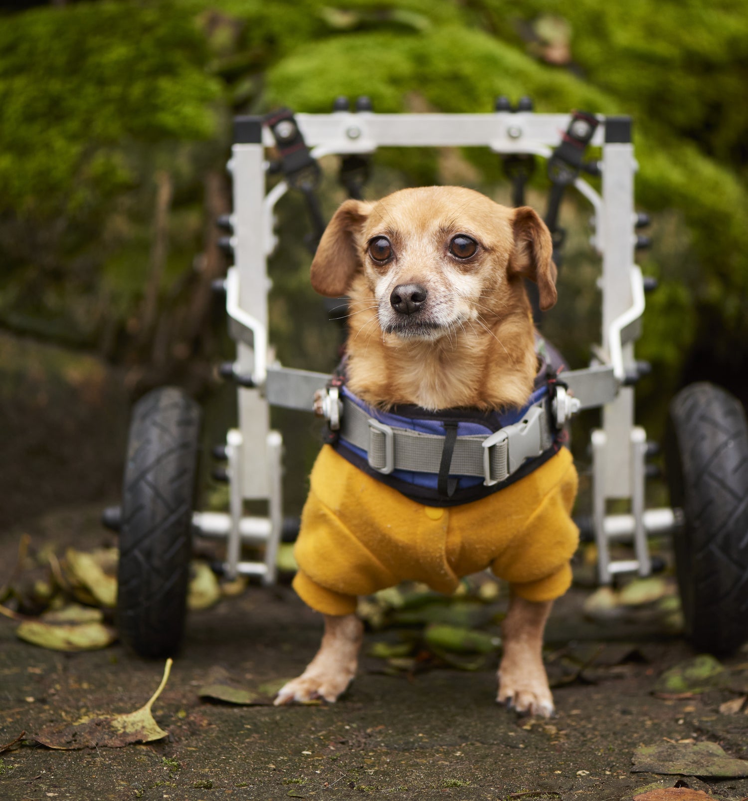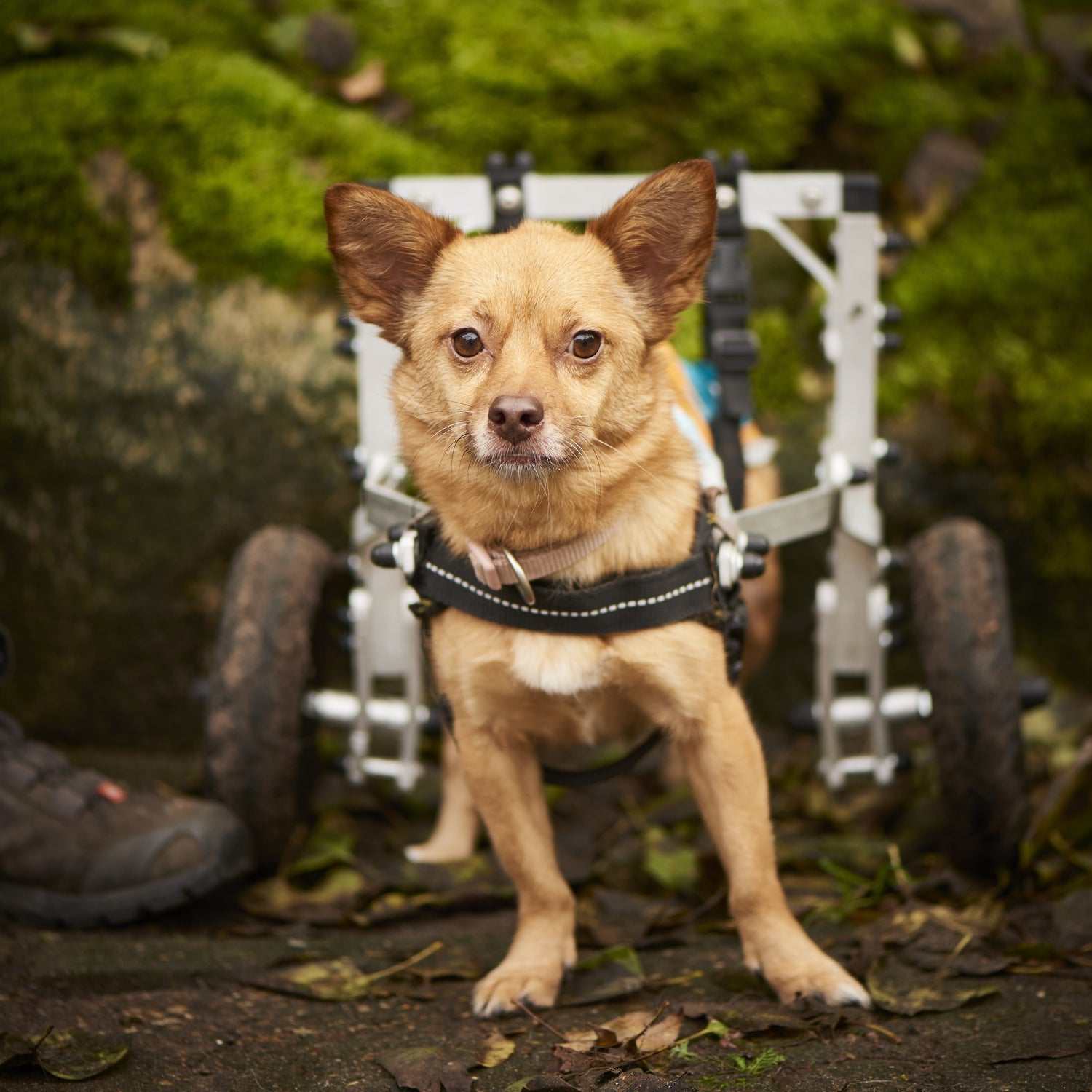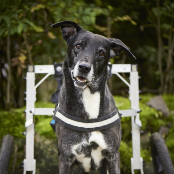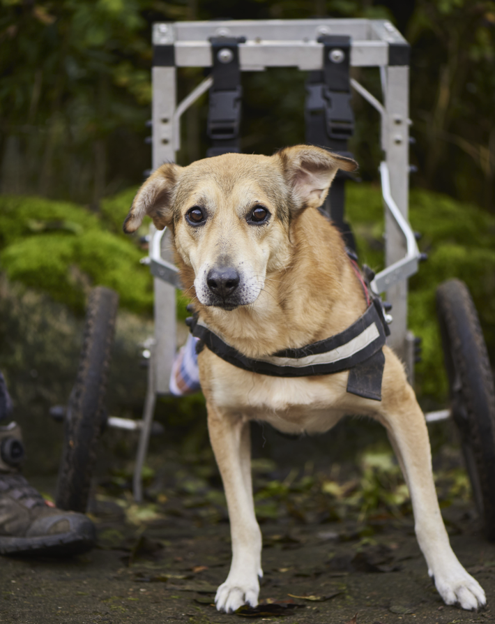 Piciu ist etwa 8 Jahre alt und kam aus Rumänien auf den Hunnenhof, weil er dort kaum Überlebenschancen gehabt hätte. Er ist gelähmt und hat beide Hinterbeine verloren – doch trotz allem zeigt er jeden Tag, wie viel Stärke und Lebensfreude in ihm steckt.