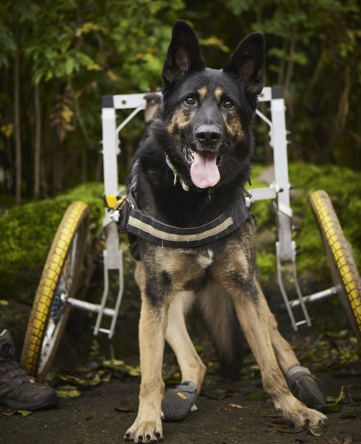 Shadow ist rund 5 Jahre alt und kam mit einer angeborenen Wirbelsäulenfehlbildung auf die Welt. Da seine Vorbesitzer mit seiner Pflege überfordert waren, fand er seinen Platz auf dem Hunnenhof. Ein paar Schritte schafft er sogar ohne Rollstuhl – und mit Rolli blüht er richtig auf und spielt am liebsten Fußball.