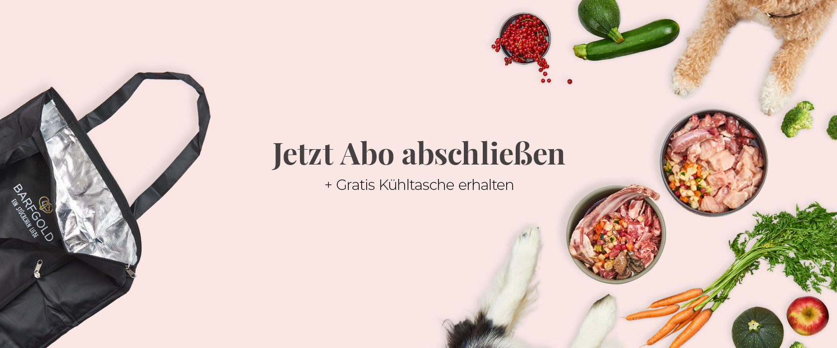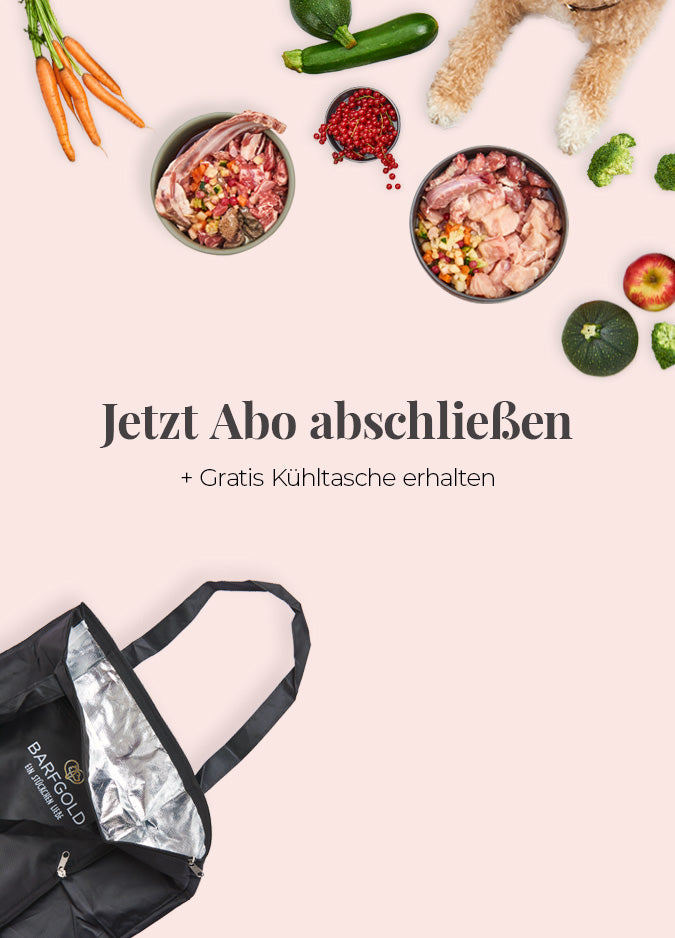 Mit jedem BARFGOLD+ Abo erhältst Du eine praktische Kühltasche dazu.