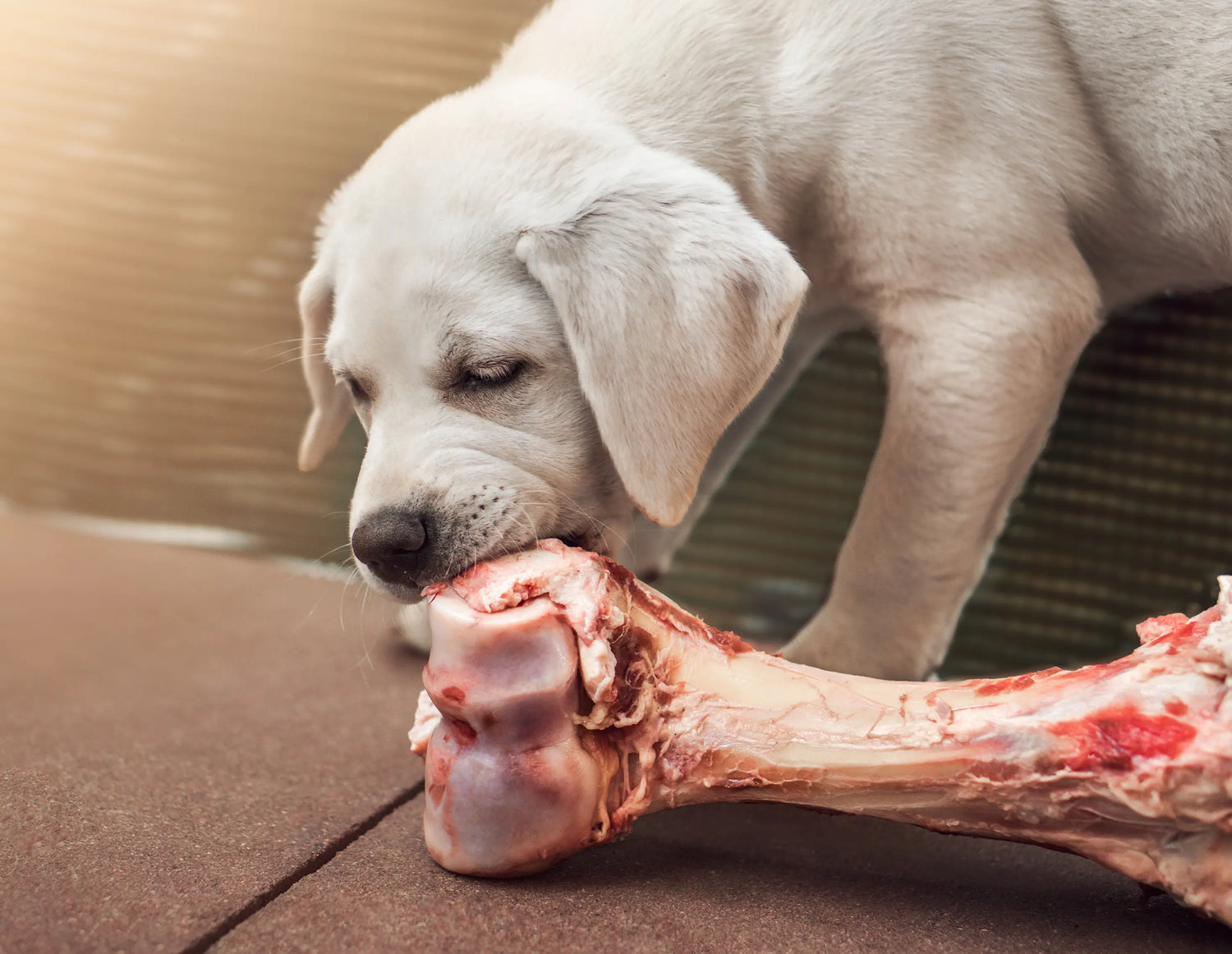 Der Welpe bekommt eine Extraportion BARFfleisch: insgesamt 6 – 8 % vom Körpergewicht, damit erhält er alle Nährstoffe, die er zum Wachsen benötigt.