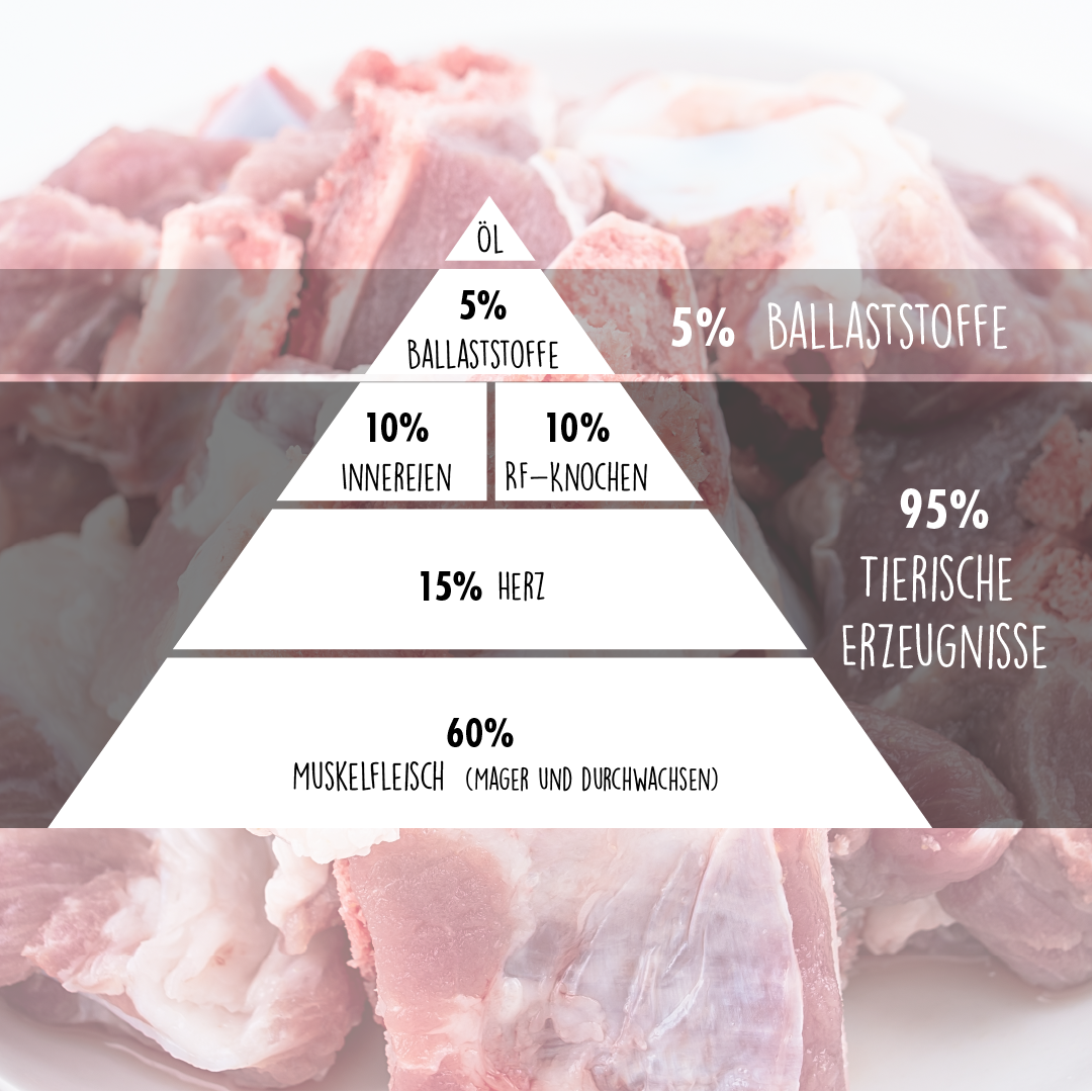 - 5 % Ballaststoffe und 95 % Fleisch ergeben: