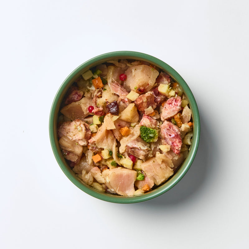 BARF mit Huhn zeigt sich im Napf auf unterschiedliche Weise. Je nach Fütterungsform sieht nicht nur die Zusammensetzung, sondern auch das Fresserlebnis Deines Hundes anders aus.