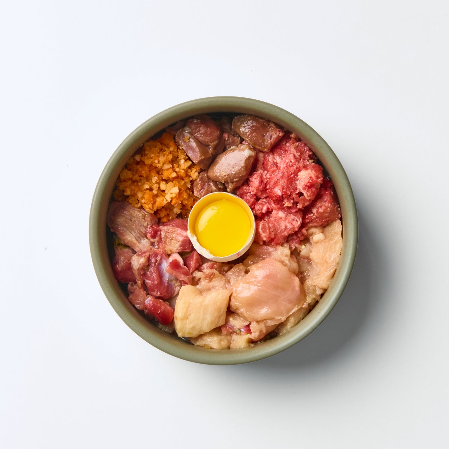 Ein vollständig gefüllter Napf ohne zusätzliches Kombinieren. Fertig zusammengestellte BARF-Mahlzeiten bieten eine praktische All-in-One-Lösung und sind besonders komfortabel im täglichen Einsatz.